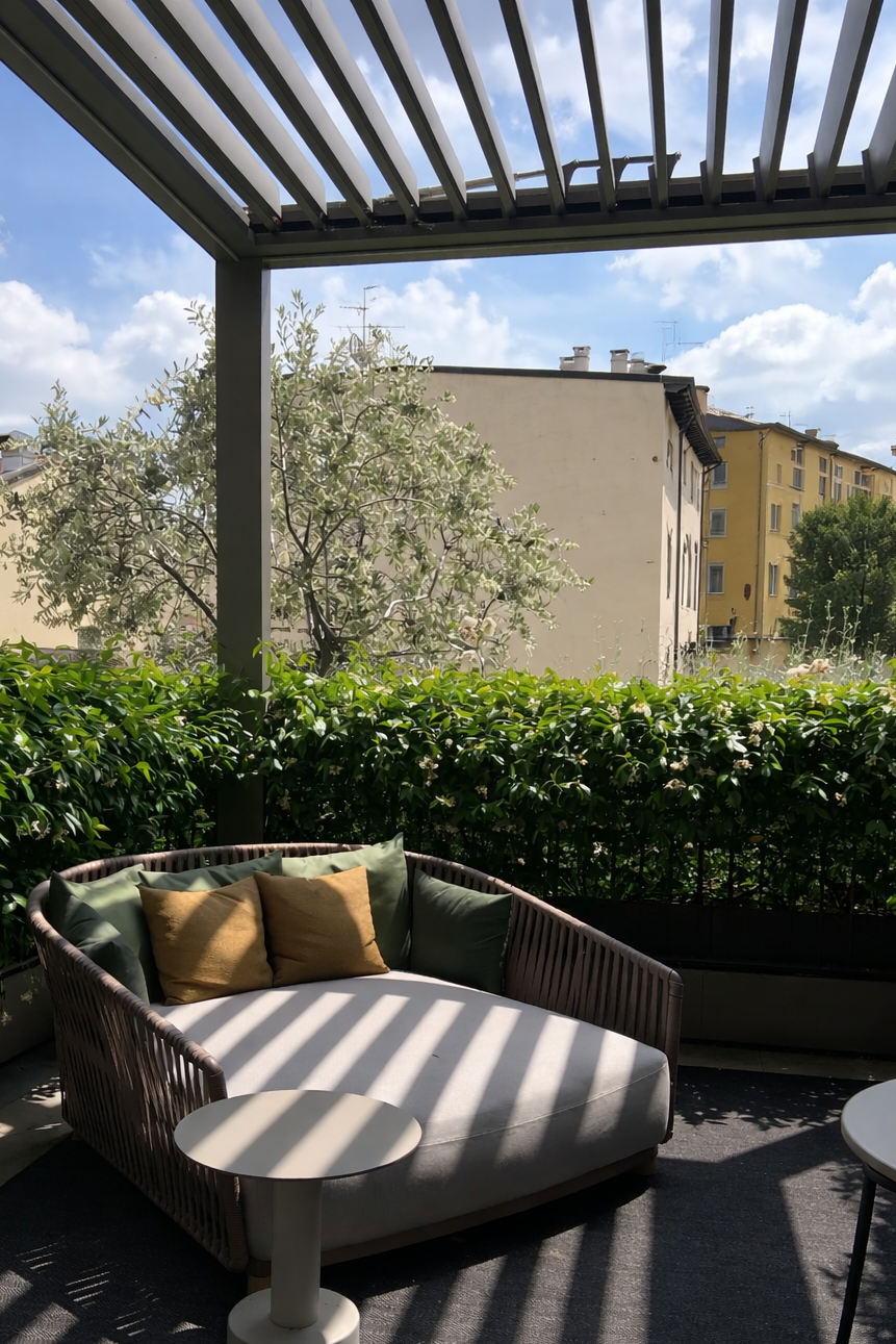 Our Family Rooms can accommodate up to 4 people and have a total area of 52 square meters. They are equipped with a double bed and two single beds. The furnishings are signature Molteni & C. made to measure. The bathroom is made with the use of natural products and stones, while the courtesy line is by The Grown Alchemist brand.